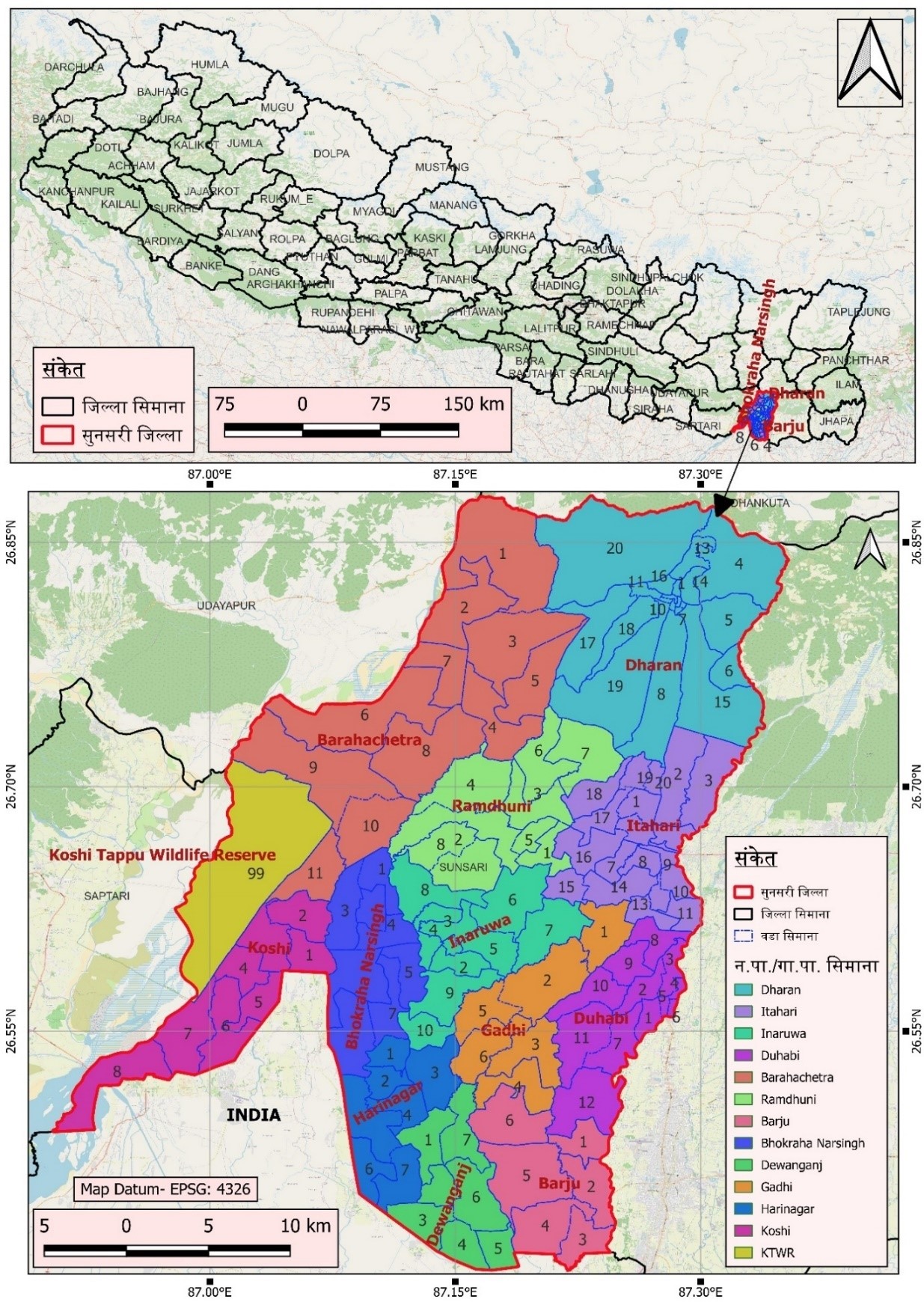 चित्र नं. 1: सुनसरी जिल्लाको अवस्थिती नक्शा